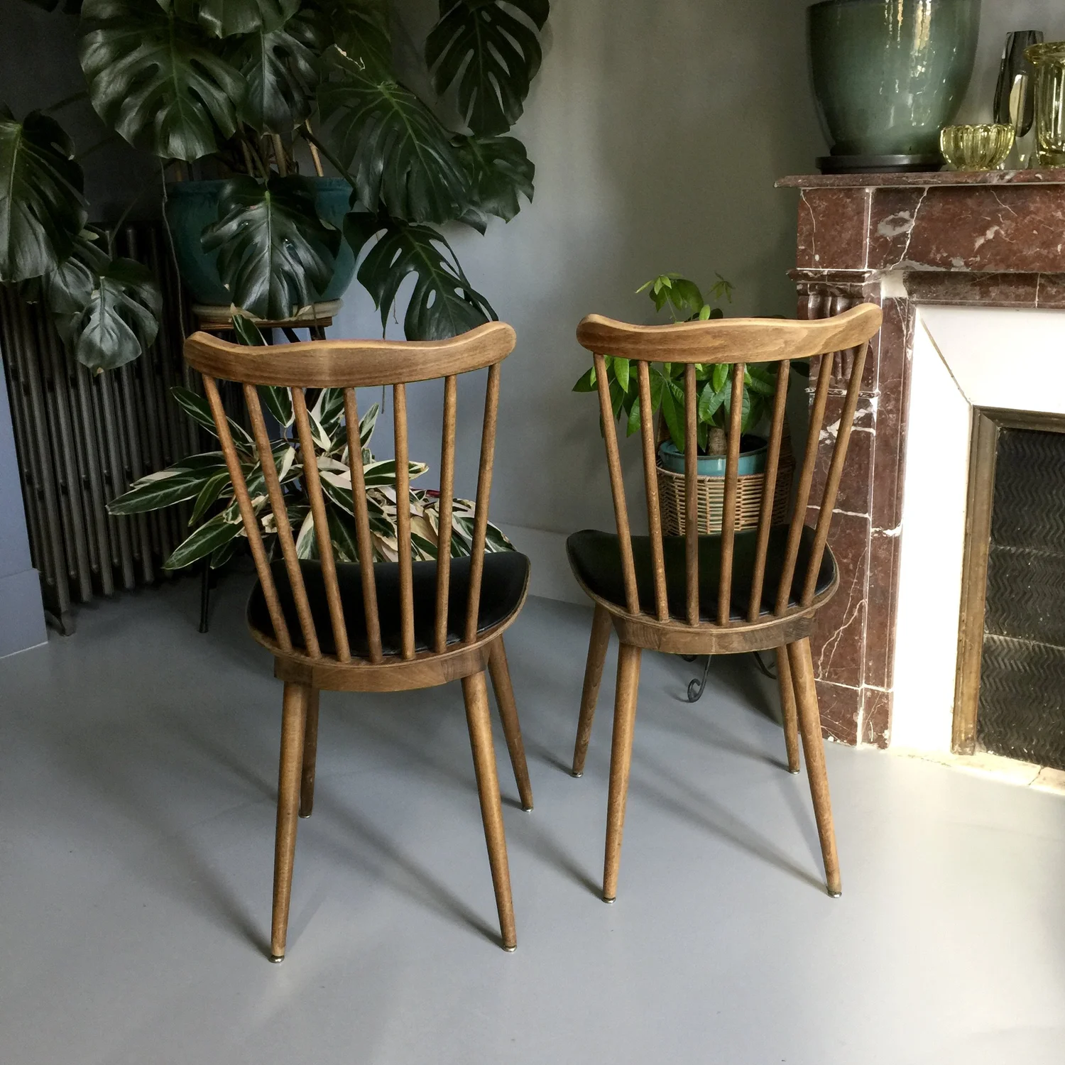 chaises Baumann noires vintage 1960.JPG